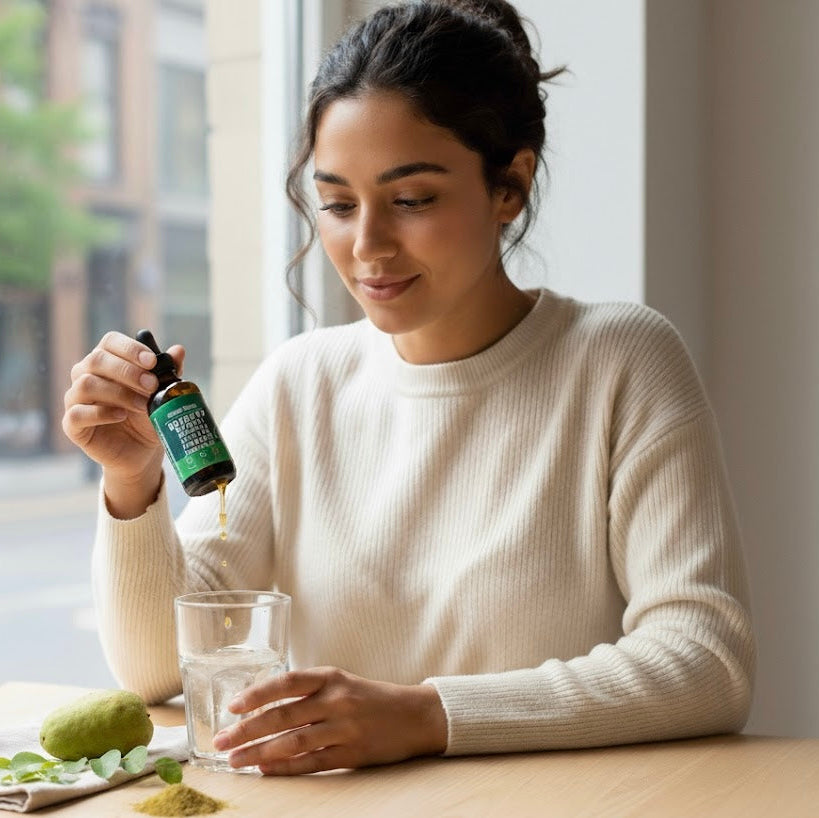 Each drop is packed with powerful plant-based nutrients that work fast to boost your focus, energy, and gut health from the inside out - every day.